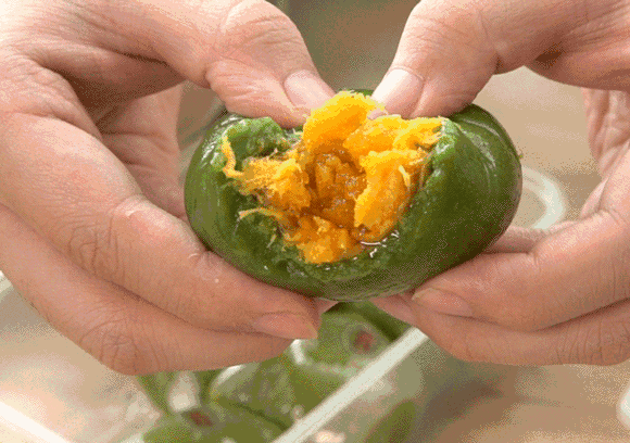 在家就可以制作敲好吃的網(wǎng)紅肉松蛋黃青團(tuán)